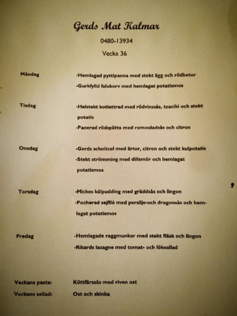 Restaurangkartan Se Gerds Mat Meny For Vecka 36 Varmt Valkomna Till Polhemsgatan 15 Kalmar Emmabodavagen 9 Nybro